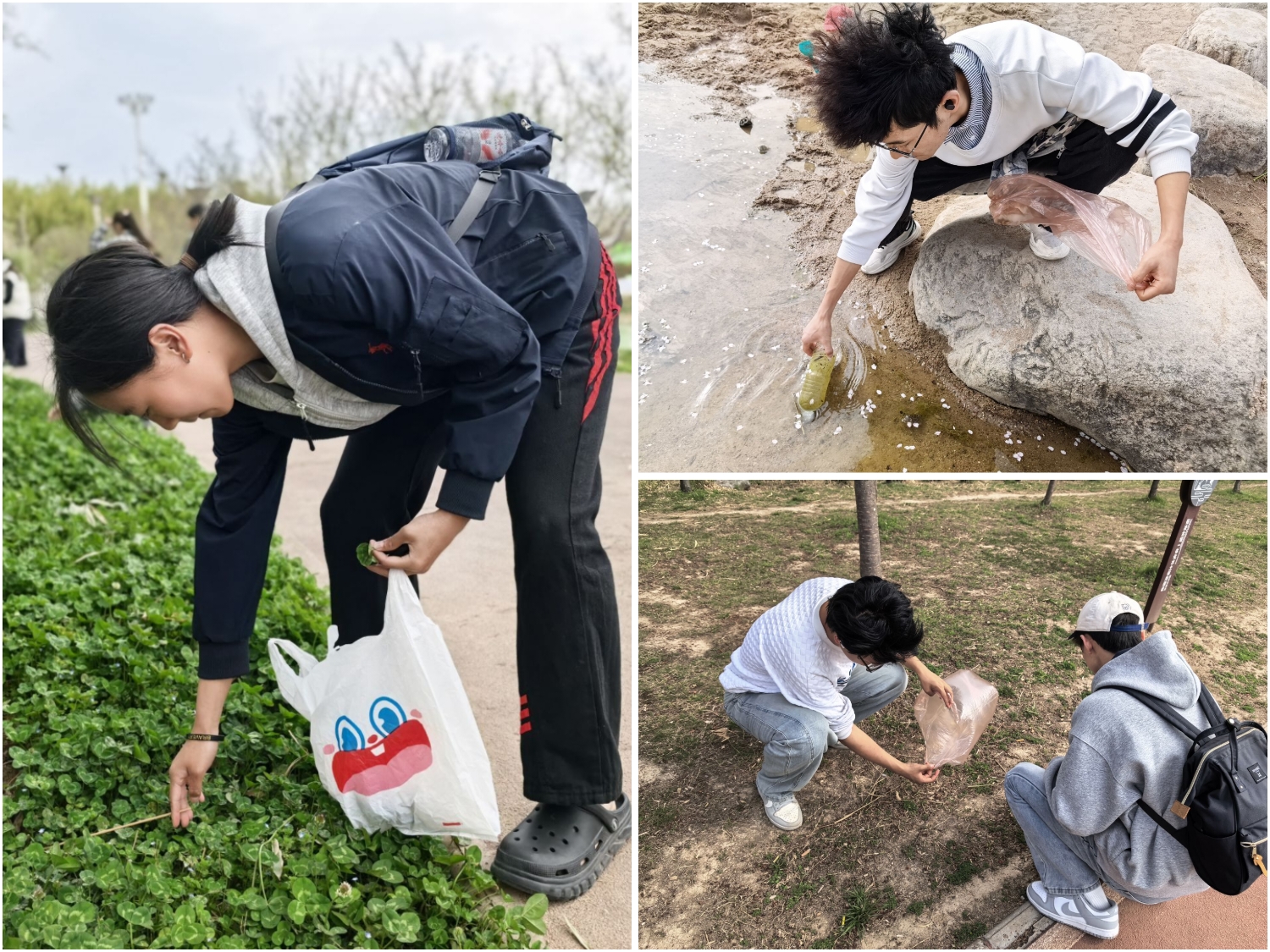 活动当天,40位同学手持垃圾夹、垃圾袋等工具,分组对渭河公园绿化带及湖边区域进行全面清理。大家发扬“不怕脏、不怕累”的精神,仔细捡拾散落的纸屑、塑料瓶、烟头等垃圾,并对可回收物与其他垃圾进行分类投放。