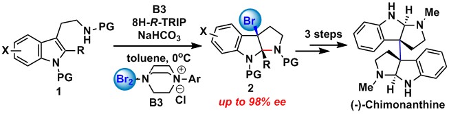 图1. 色胺不对称溴环化及(-)-Chimonanthine的不对称合成