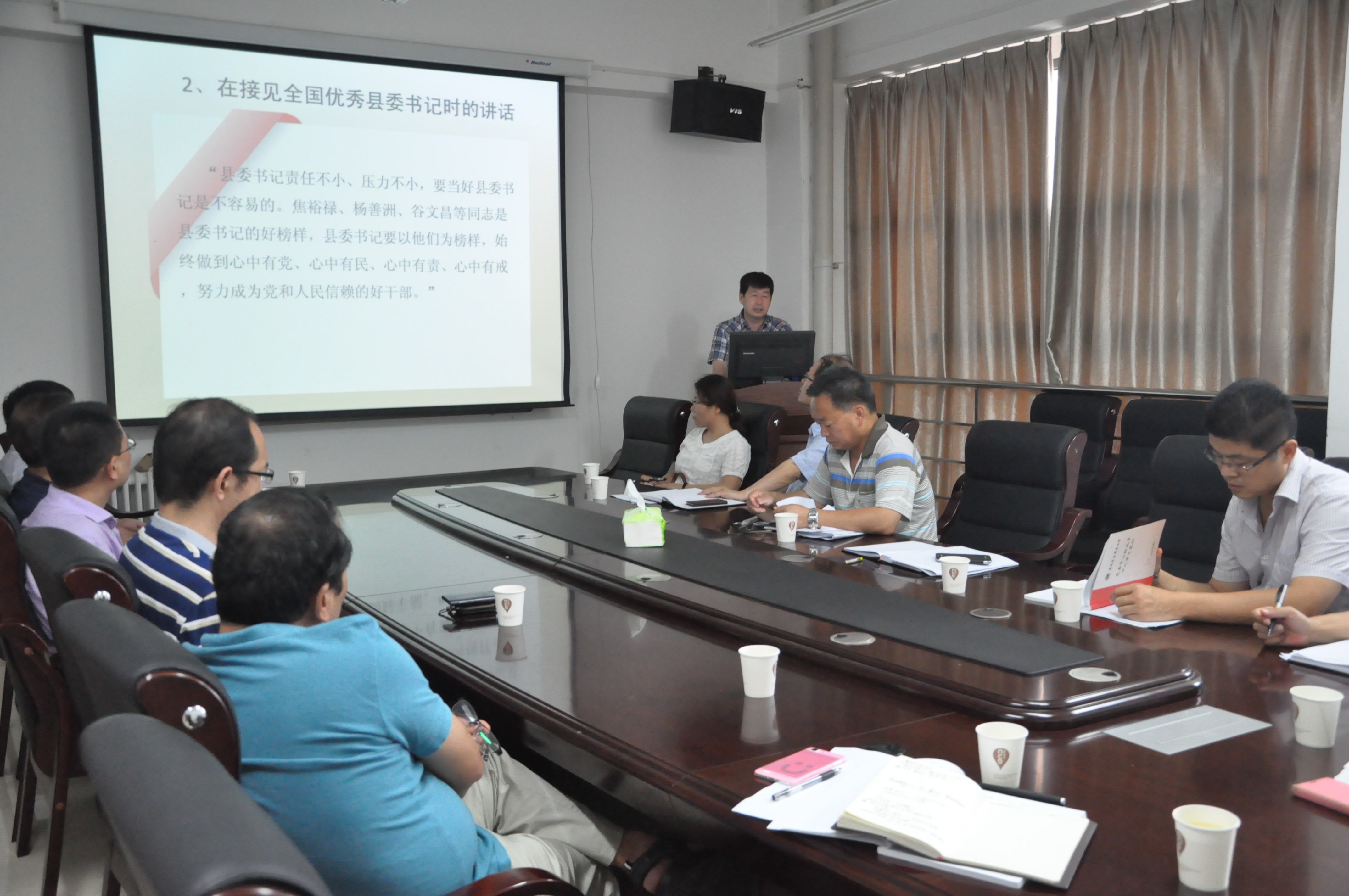党委书记解读习近平重要讲话。学院党委书记王吉成在传达中共中央组织部《关于认真学习贯彻习近平总书记重要指示精神扎实推进“三严三实”专题教育的通知》精神的基础上,按照文件要求对习近平总书记在浙江和贵州考察时、在接见全国优秀县委书记时、在中央深改组第十四次会议上的讲话精神进行了重点解读。