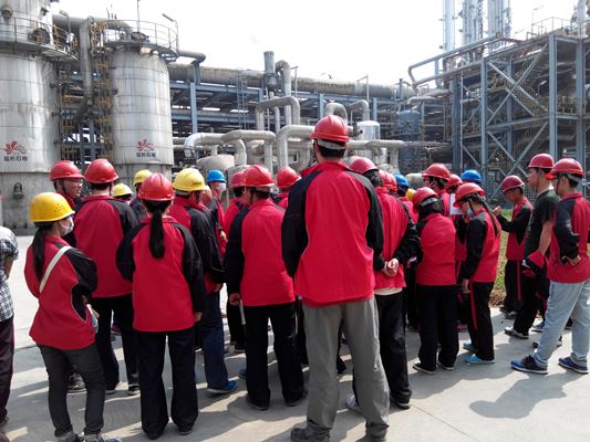 实习期间,王进义教授、汪玉秀副教授寸步不离跟着学生,在讲授专业知识的同时还在不停的强调、叮咛、嘱咐安全注意事项。在有关技术人员的带领下,在声情并茂的讲解中,同学们参观学习了整个工艺流程,先后进入了甲胺车间、气化车间、合成车间、硝酸车间和造气车间等,走遍了兴化公司的每一个角落,既见识了工厂化作业的宏伟,也体验了高科技作业的精细,解决了久久萦绕在同学们心中的书本知识如何应用的困惑。实习期间,学院领导与办公室也多次去实习车间对同学们进行慰问,并为同学们做好后勤保障。