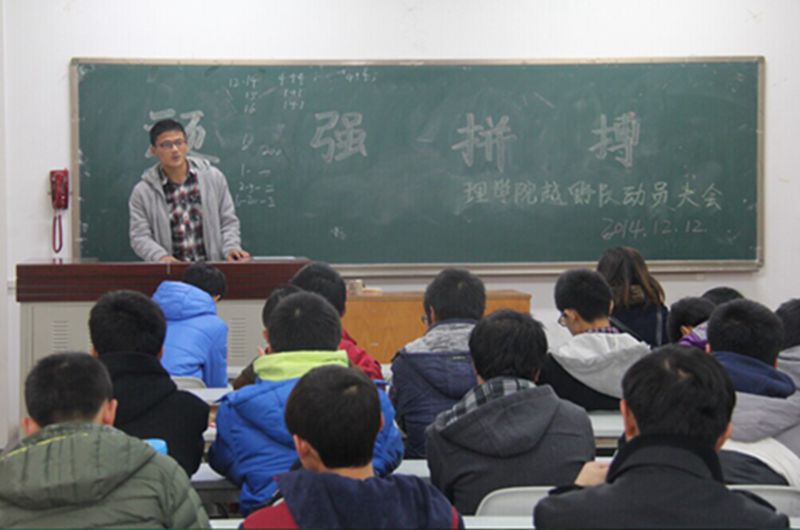 为增强理学院越野队凝聚力,在即将到来的校越野赛中可以再次取得优异的成绩。越野队于12月12日于3308举办了以“顽强拼搏”为题的动员大会。