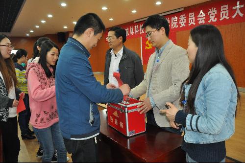 我院党委高度重视此次代表选举工作,一是严格按照“两上两下”原则开展了代表候选人的提名推荐工作,充分体现了全院师生党员的意愿。二是积极筹备,做好各项会前准备工作,并严格按照选举工作程序组织选举,确保了选举结果的公正有效。三是充分利用大会计票时间,组织全体党员观看了教育片《与时俱进话党章》和王辉同志先进事迹,教育引导党员遵守党章党规,向身边的先进典型看齐,争做新时期合格的共产党员。