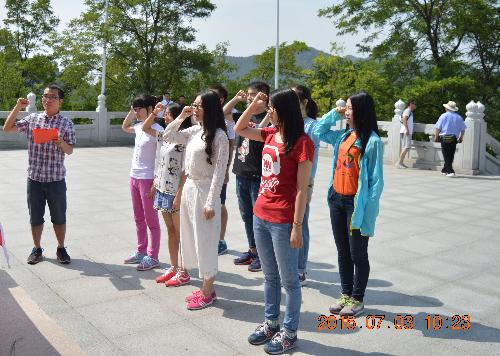 在纪念馆前合影留念