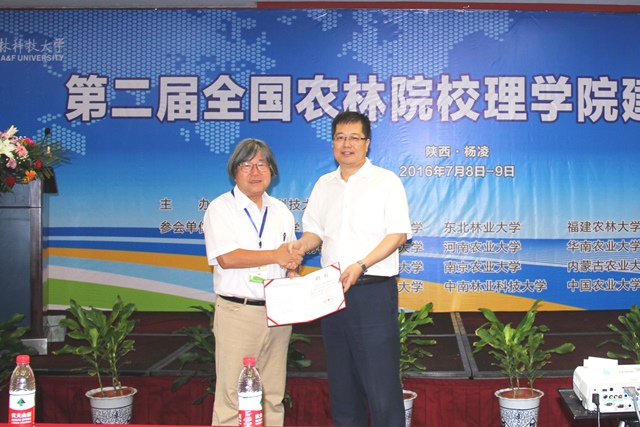 7月8日至9日,由我院主办的第二届全国农林院校理学院建设研讨会在杨凌国际会展中心召开,大会以“互联网+下的基础课教学与创新创业驱动下的理科人才培养”主题,就农林院校中基础学科的发展进行研讨。全国17所农林院校理学院党政负责人、教师代表和中国农业出版社负责人共100余人参加了此次会议。西北农林科技大学副校长罗军、日本德岛文理大学药学院院长福山爱保教授出席开幕式,大会由我校理学院院长高锦明、党委书记王吉成主持。