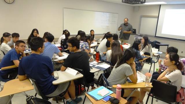 在UCI的课堂学习是我这次访学收获最大的。UCI是小班化教学,教学楼里大部分教室都只能坐30人左右,因此师生课堂上互动机会很多。和国内相比,这里的课堂更加轻松活跃,更加注重学生的积极性和参与度,每当一个环节结束时老师都会问 “Any questions?”,体现了重视学生反馈。另外,UCI的实验室,或许这可以说是美国的大学实验室的一个缩影。我们参观的一个著名实验室是在利用激光研究细菌营养代谢过程,这让我觉得他们的思维很巧妙,一个杰出的实验室不光需要先进的技术,也许更加需要新颖的想法,比如还有一个实验室以一个不一样的方式来设计游戏,将音乐游戏和中风病人的康复训练结合,使枯燥的康复训练变得生动有趣,这正是所谓的创新精神。